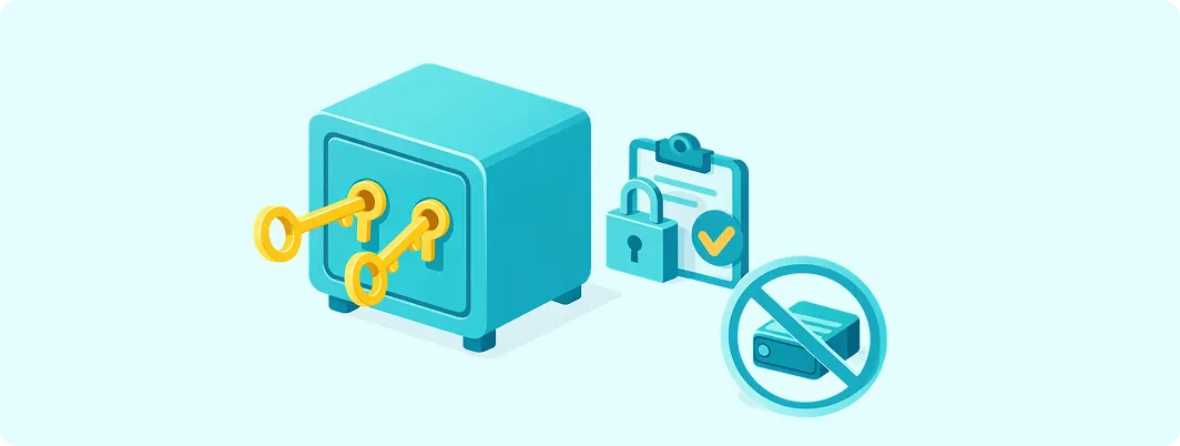 ・シードフレーズはインターネットから切り離された環境で保管し、不正アクセスを防止します。 ・金庫の開錠権限を持つメンバーは限定し、社内で厳格に管理します。