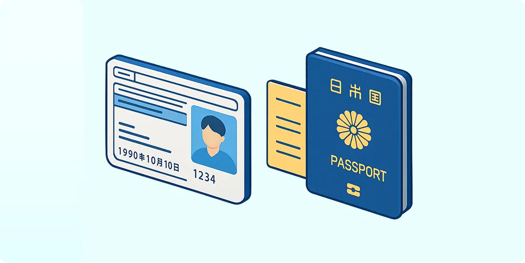 - パスポート と 健康保険証 または 年金手帳
